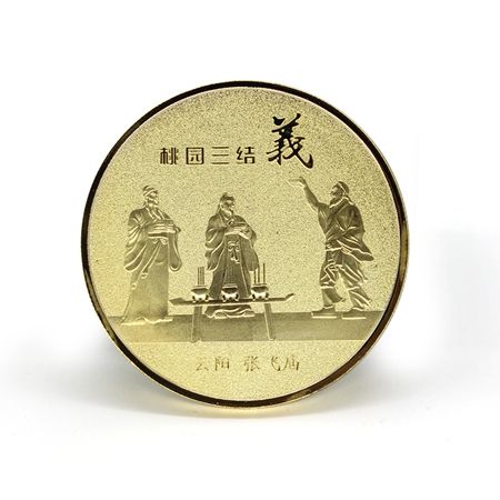此為桃園三結義純金紀念章設計制作案例,深圳市聚福和文創實業有限公司是一家集設計、生產、制作于一體的文創產品定制廠家,為企業提供金銀紀念章設計制作解決方案。公司免費文創設計,專業定做純金、純銀、銅、鋅合金等各種材質紀念幣、紀念章章,找廠家批量定制紀念幣,紀念章就找聚福和。